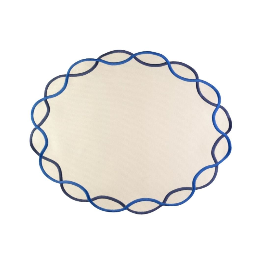 OVAL PLACEMAT BLUE EMBROIDERED
