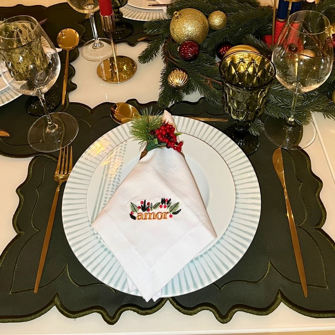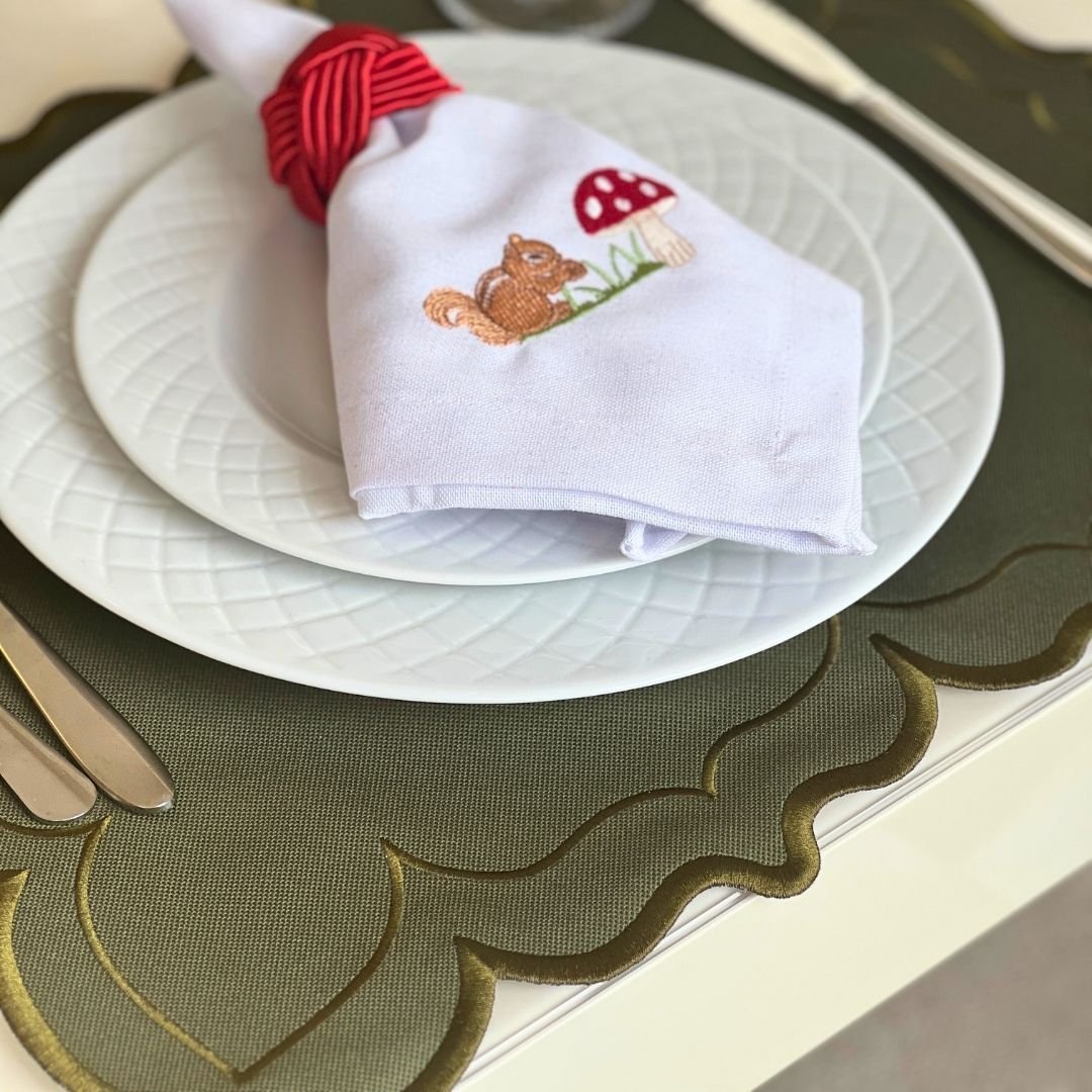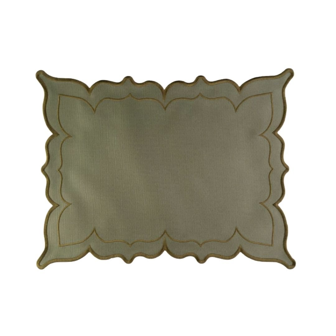 Soft-touch polyester placemat with refined embroidered finish. The subtle green tone blends with classic or modern settings; durable and easy to clean.