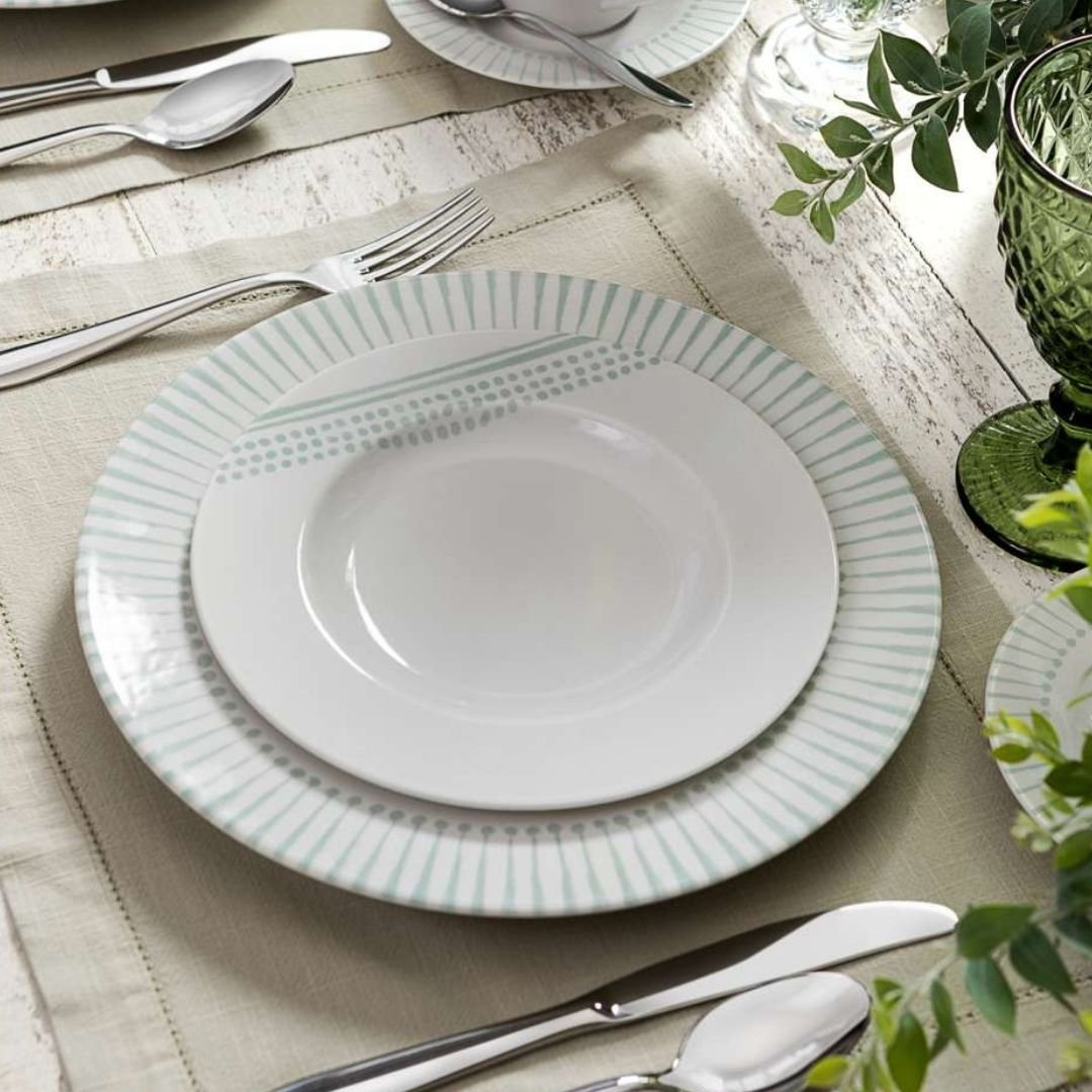 The key word for the Monocroma collection is subtlety, with its delicate pale green detailing around the borders of every plate, which can be stacked closely on top of each other for compact storage. It’s the perfect gift idea for any occasion.